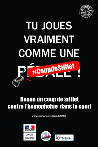 Retrouvez également la campagne contre l’homophobie lancée par le Ministère des Sports : Coup de Sifflet contre l’Homophobie.