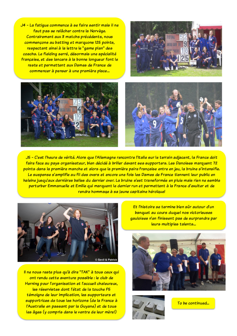 L’Esprit du Cricket est donc allé à la rencontre des Dames de France pour leur proposer un reportage inside sur leur conquête de l’or européen. Et elles ont répondu, par l’entremise d’Irma Vrignaud et Béatrice Pierre, avec une originale BD live (sorte de roman photo en plus cool). Embarquez dans la folle aventure de nos Bleues à la conquête de l’or européen… comme si vous y étiez !